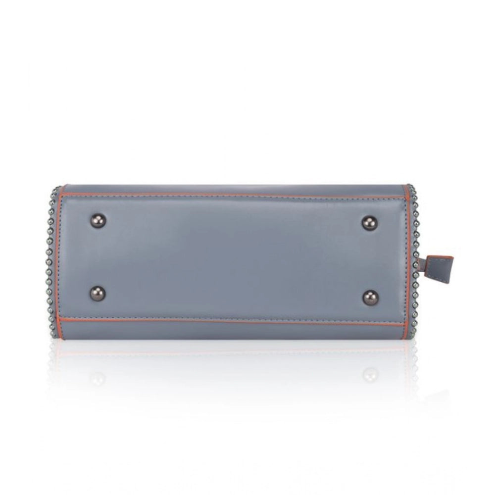 Women Faux Leather Metal Beads Handbag (Grey)