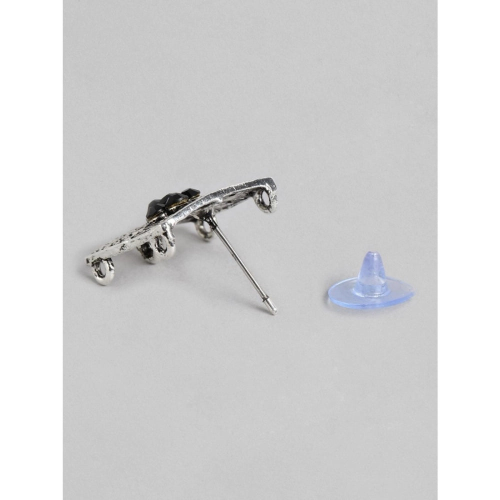 Women Rose Gold Plated Alloy Necklace & Earings Set (Silver & Black)